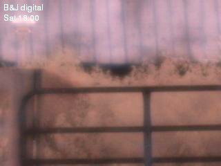 However, let's look at that image a little more closely. The Burke & James has a Kodak Ektar 127mm f/4.7 lens and this sensor is quite tiny, so we get quite a huge "crop factor." Basically, we have the equivalent angle of view of a high-power telescope, and the lens is quite fast when you think of it that way. Did I mention that the sensor doesn't have a filter to block near-infrared (NIR) light, so it can work even when there's not enough visible light? I've been using this rig as one of many surveilance cameras, and this one gives a nice close-up of the gate to my property... from 300 feet away looking out a window! The window glass and atmospheric distortion are why the image isn't tack sharp... maybe I should be doing adaptive optics (AO) compensation?