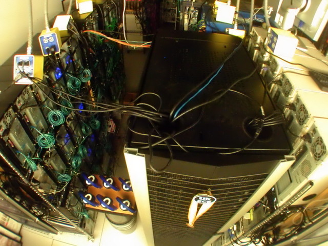 Of course, it is a bit of a joke for it to be in an air-conditioned machine room among our cluster supercomputers. Although we haven't measured power drawn by KREQC, it is reliably powered by a 2.5 amp 5 volt supply, and it really doesn't generate significant heat. It also is rather tiny compared to even the single-rack cluster that is sitting beside it. Then again, why not house it there?
