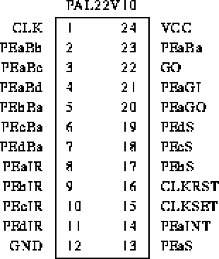 PAPERS0 follows the barrier architecture defined in section [papblk]. The logic modules (LM0-LM3 for PAPERS0) are implemented using AMD 22V10 PALs (Programmable Array Logic) to minimize the chip count as well as to reduce the wiring complexity. A total of 4 PALs are used, one for each PE.