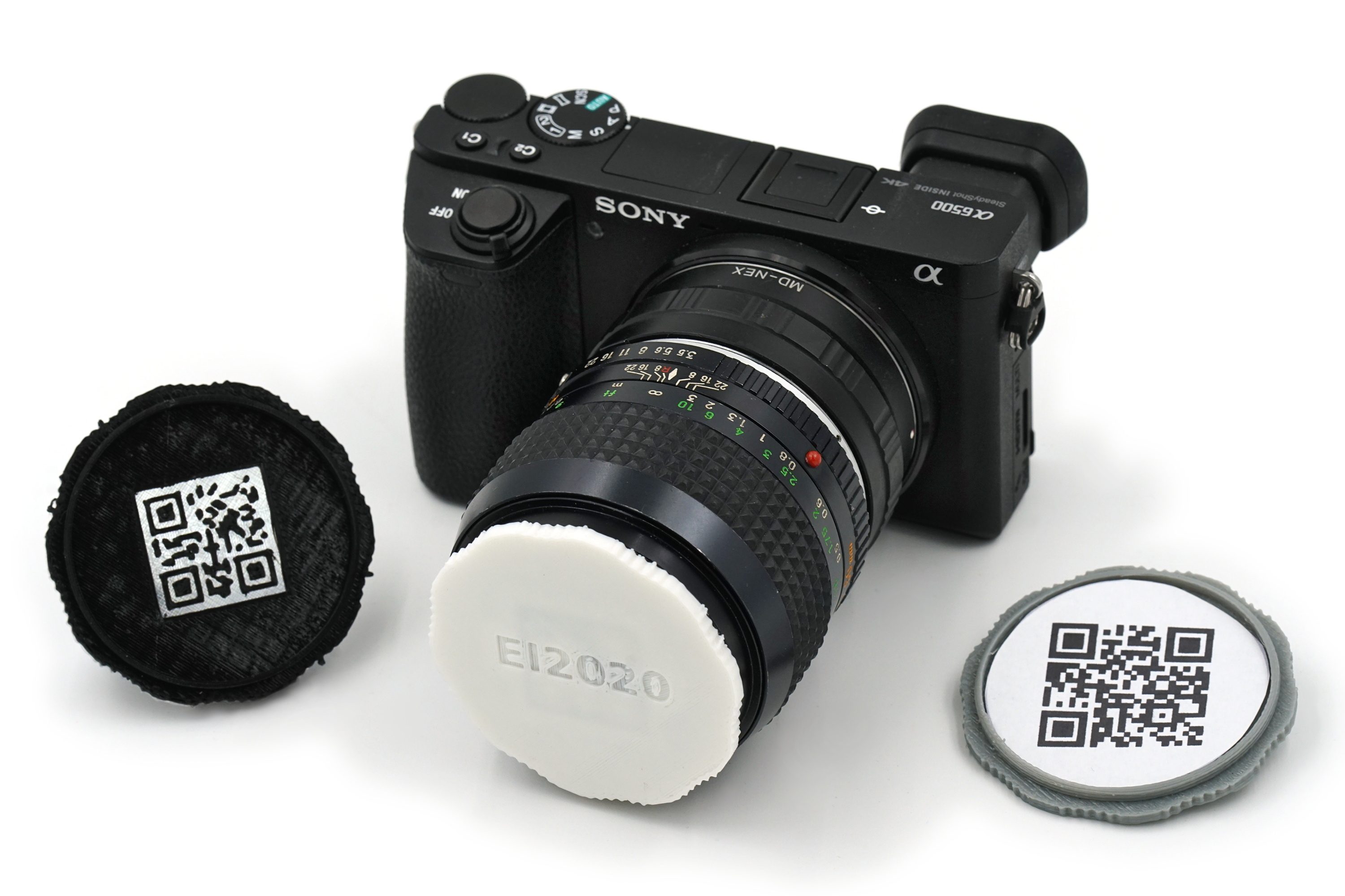We have posted the customizer model generator for 3D-Printed Screw-In Front Lenscaps With Optional QR Code. Note that the QR code requires some contrast to work well, so you may want to change filament to a different color, or use paint or a marker, to give the QR code pattern higher contrast.